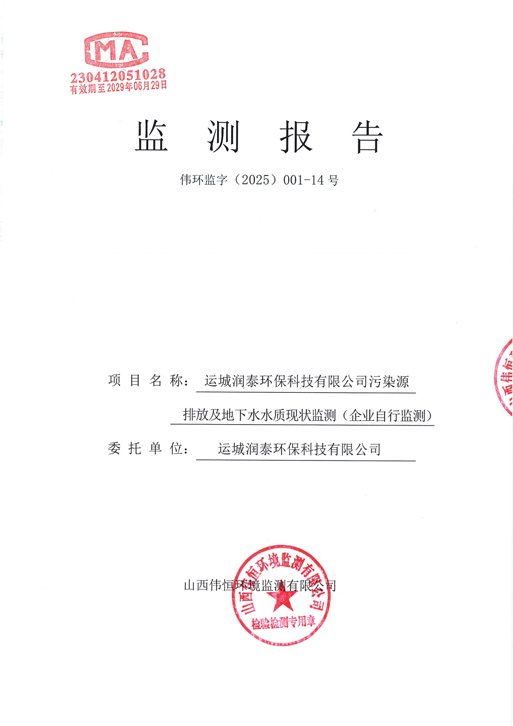 2025年潤泰環(huán)保十一月份自行監(jiān)測報告