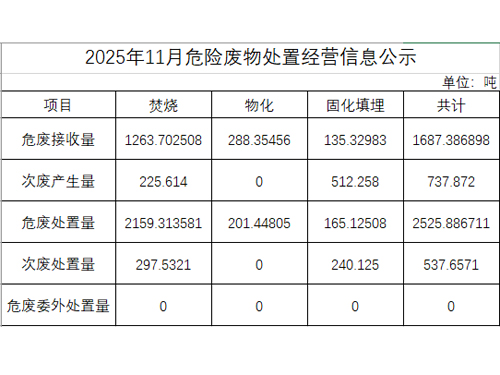 2025年11月危險廢物處置經(jīng)營信息公示