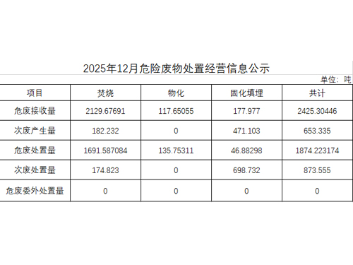 2025年12月危險廢物處置經(jīng)營信息公示